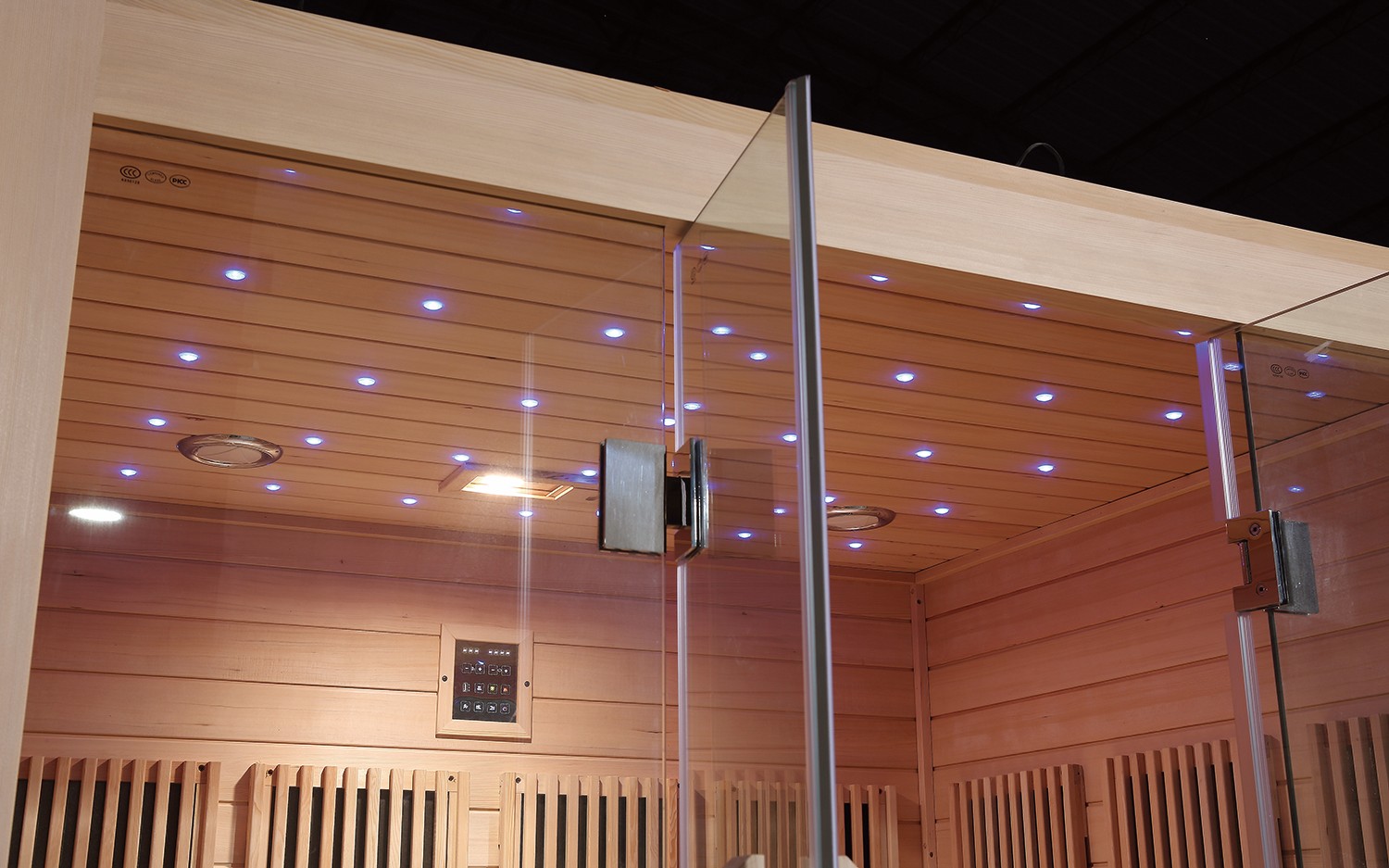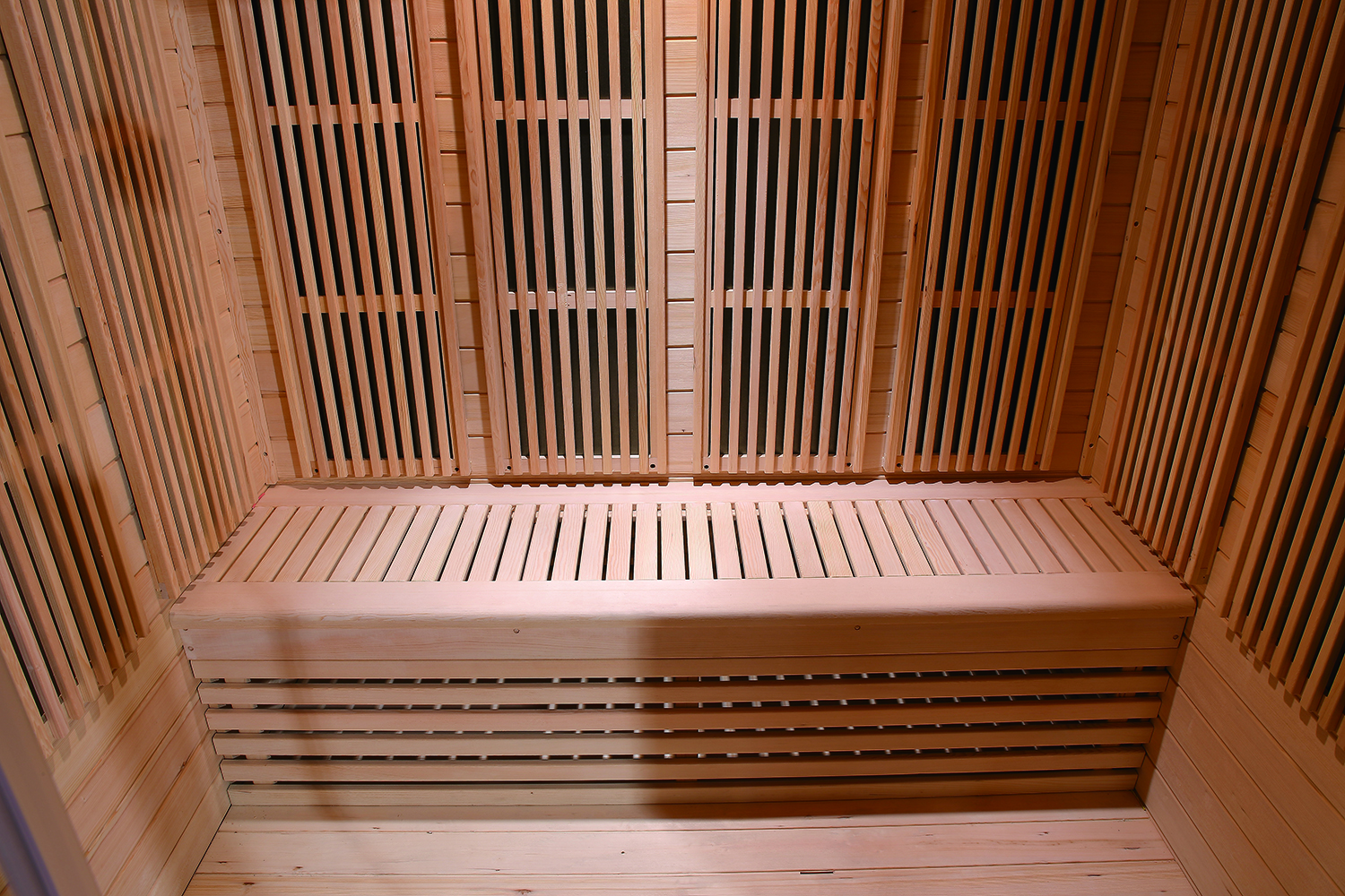 - Infrared heaters are positioned inside the sauna walls and beneath most benches. Obstructing any heater, including non-glowing units, can result in a fire hazard.