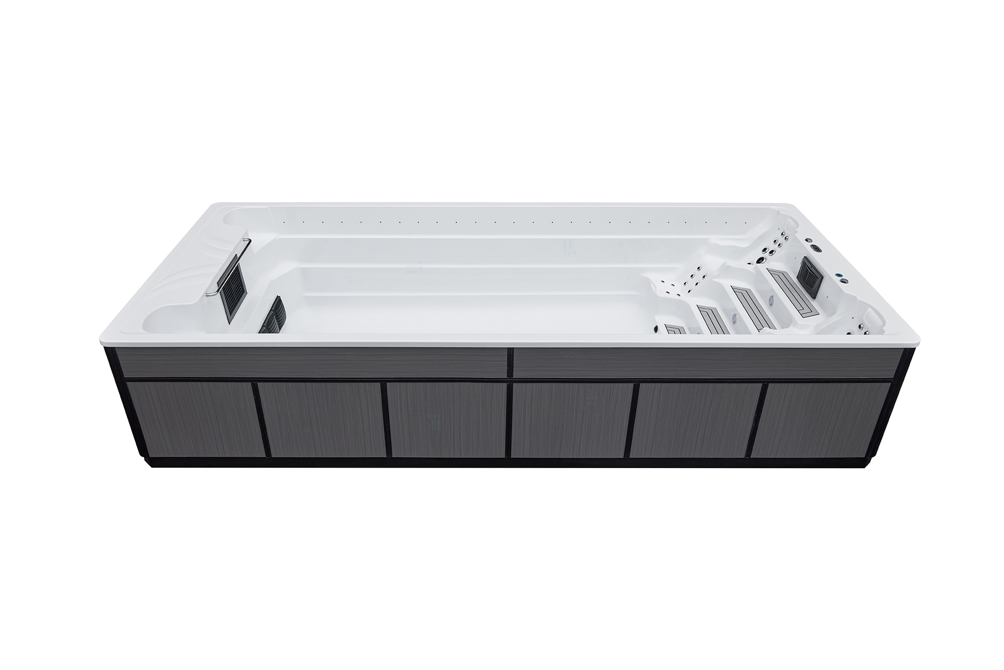 The BOSE ALGSJO is a 7.0m Premium Hydro-Current Training Swimming Pool, a beautifully designed and professionally constructed outdoor system. It features temperature-controlled water and high-pressure jets that generate a powerful, fully adjustable current, ideal for effective, high-resistance swim training. Experience the ultimate combination of cardiovascular fitness, fun and spa-jet relaxation in the comfort of your own outdoor space. Strategically positioned 48 jets deliver concentrated streams of water, enabling continuous, powerful swimming strokes with adjustable intensity to customise your workout. The spacious integrated design also accommodates a 2-seater hydro spa area equipped with powerful hydrotherapy jets.