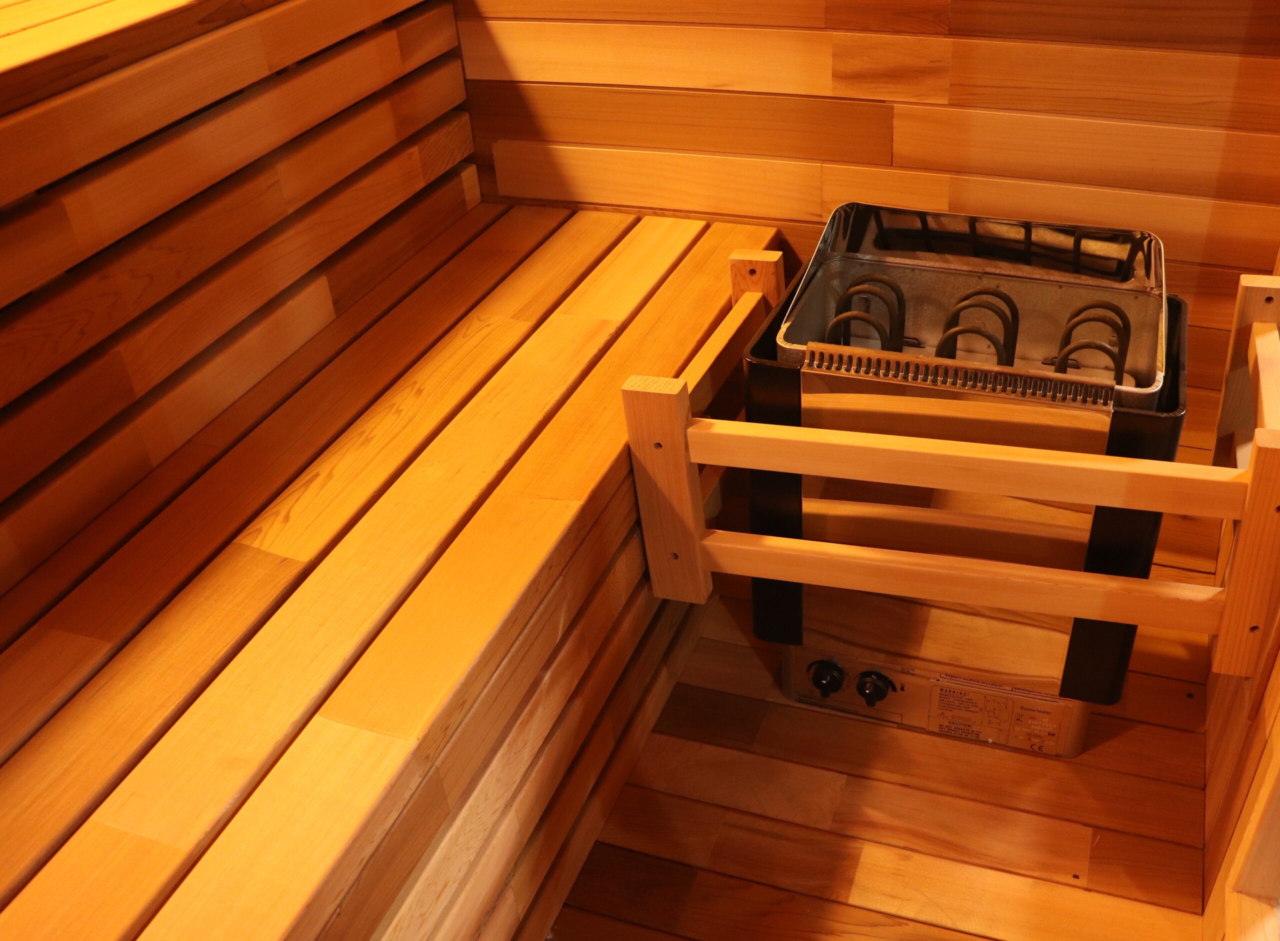 - Infrared heaters are positioned inside the sauna walls and beneath most benches. Obstructing any heater, including non-glowing units, can result in a fire hazard.