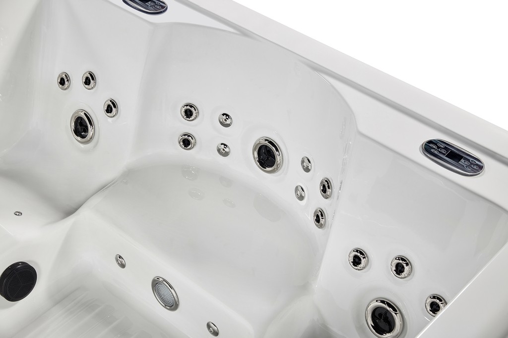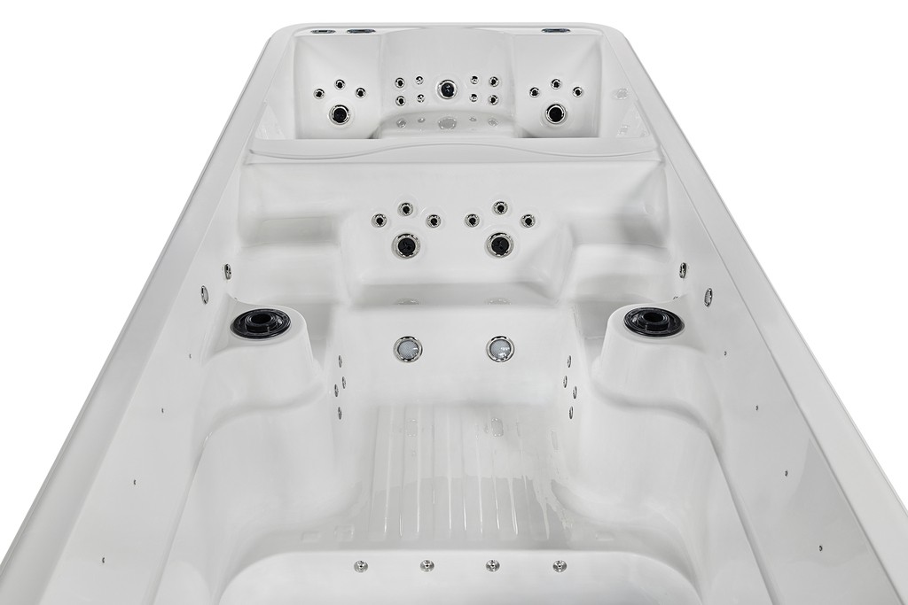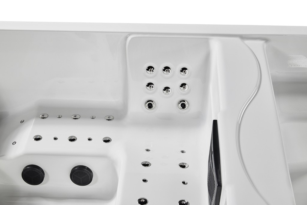 A total of 73 strategically positioned Hydro Spa jets (6+2 person) deliver focused, invigorating water streams, while 28 Hydro Swimming Pool jets generate a smooth, continuous current that supports powerful, uninterrupted swim strokes. The adjustable resistance allows users to customise intensity levels to suit individual fitness goals or rehabilitation needs. The spacious interior accommodates up to 5 seating positions, including 2 full lay-back hydro-spa seats equipped with advanced hydrotherapy jets for superior comfort and relaxation.